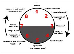 I hope I've made it clear to you before I do that that the REAL structure of any good story is simply circular - a descent into the unknown and eventual return - and that any specific descriptions of that process are specific to you and your story.